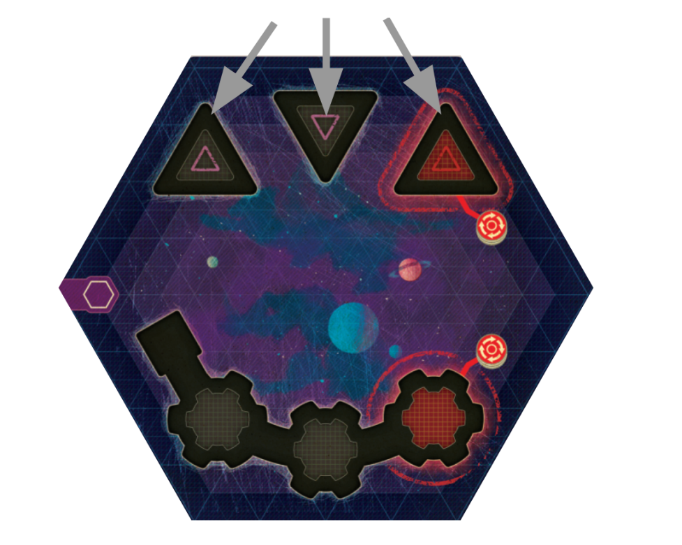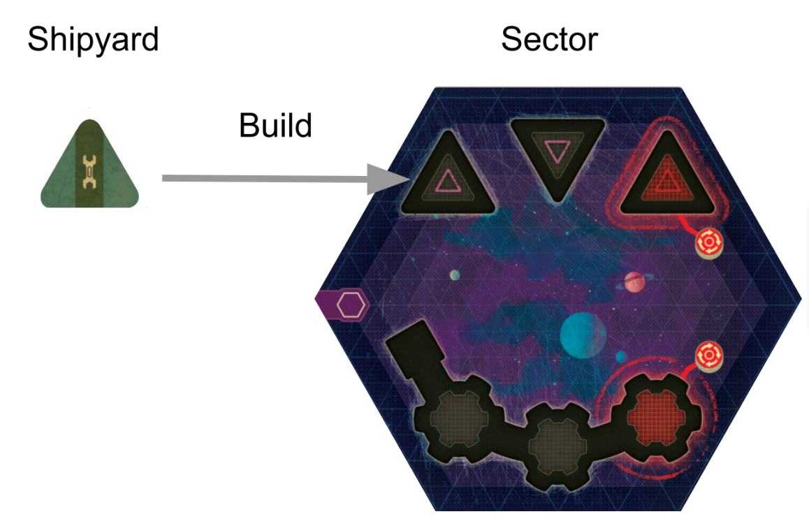 - Place the triangle on the hexagon, and suddenly you’ve “built a Shipyard in the Sector.”