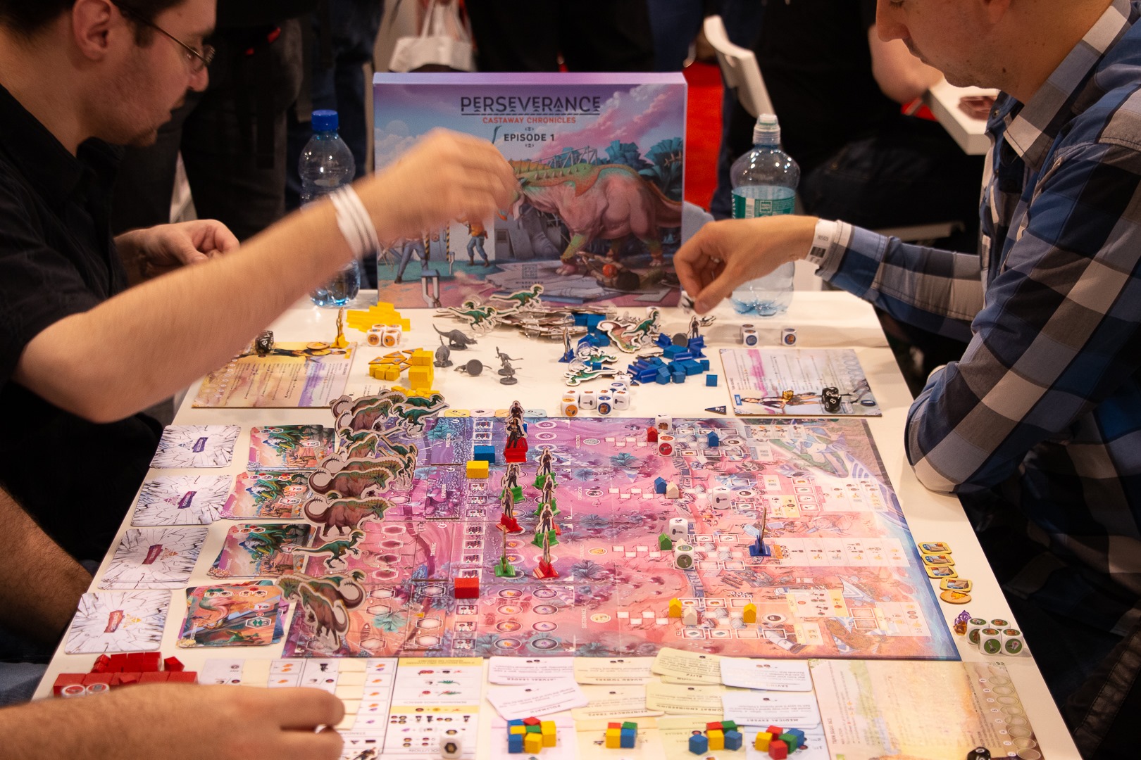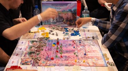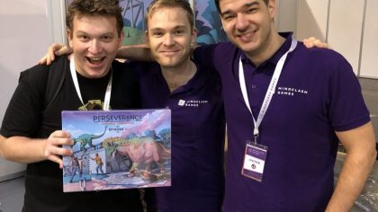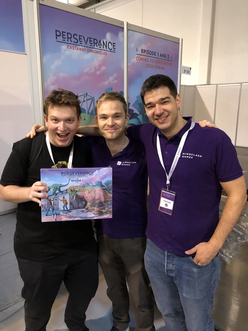 For Mindclash Games, the focus of this year’s SPIEL was a stranded ocean liner, a mysterious island and its native dinosaurs: we have demoed the first entry of our upcoming game series Perseverance: Castaway Chronicles for the first time in public. The four standalone games called episodes of Perseverance are the biggest game and product design challenge this publisher has ever undertaken, and we are very grateful for everyone’s feedback on Episode 1. Your thoughts and impressions provided us with an extra amount of dedication to present you the first part of a really epic project on Kickstarter next spring.