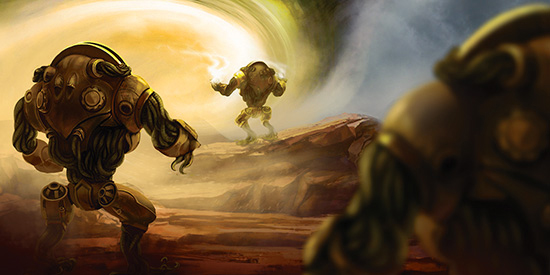 When the Time Rifts opened up once again, an army of gigantic, self-propelled Exosuits slowly marched through it. The Guardians, as it turned out, were the parting gift of a dying World Council from an alternate future, where the impact resulted in a fatal catastrophe. They left behind their doomed world to help us save ours.