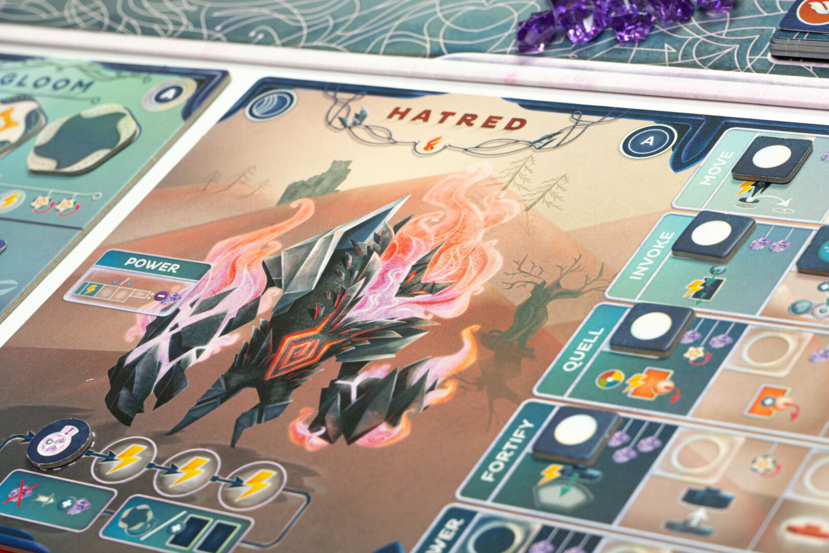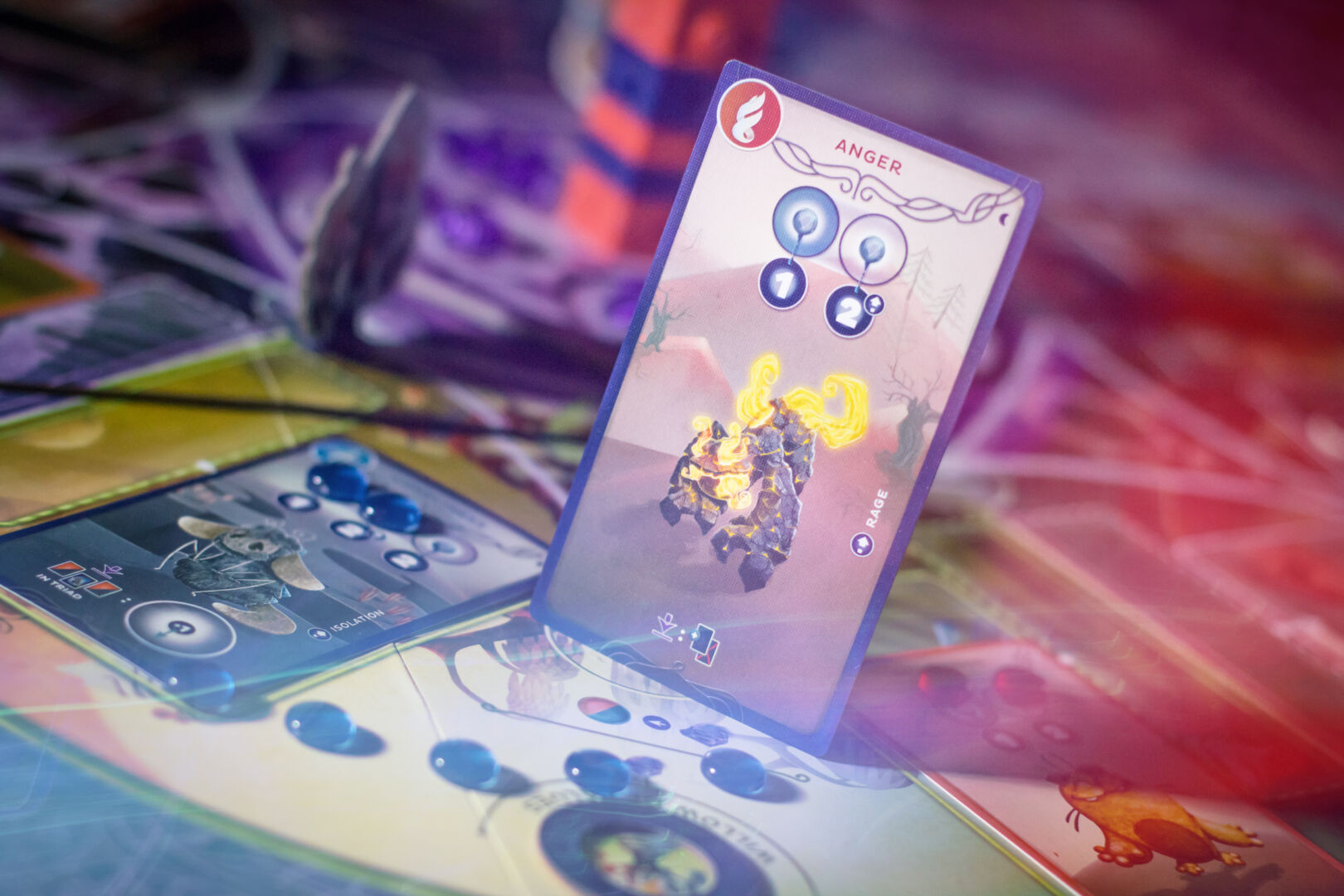 Players can gain Fragments by invoking Emotions into their Mindset. However, these Fragments can be spent on the effect of the Emotions’ Abilities, so it is up to the players to decide whether they hold on to their victory points or spend some of them to be more efficient. Emotion Ability effects can interact with other Mindsets, other players’ hands and the Impulse; but they can be canceled by discarding Emotions of the matching type.