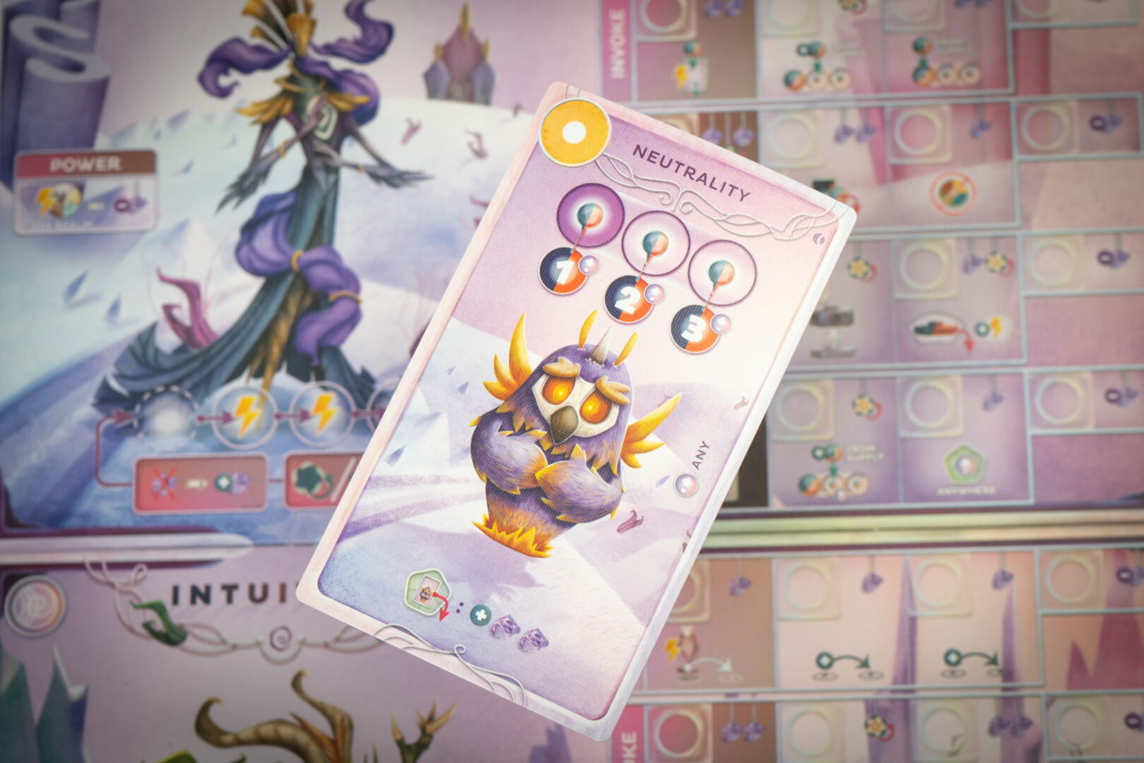 The other condition is unique to Balance, and winning one is worth a Minor Fragment, while winning both is worth a Major Fragment. Just like Bliss and Gloom, Balance wins by having the most points at the end of the game from Identity Fragments and the Wheel of Intentions.