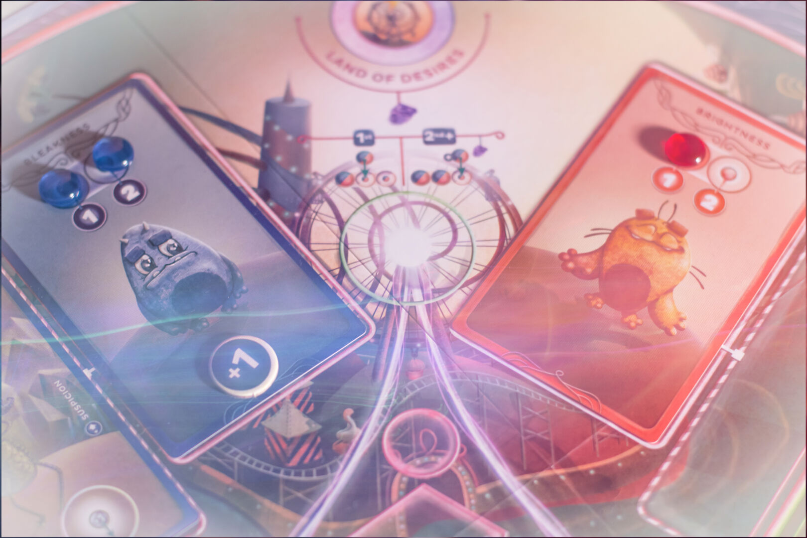 Balance players have their own method to gather Identity Fragments during the game. They do not compete for the Common Aspiration; instead, they have special Hidden Aspirations with two different conditions. The first is similar to the normal Aspirations with a twist: Balance only wins if Bliss and Gloom are tied in that condition during the Revelation!