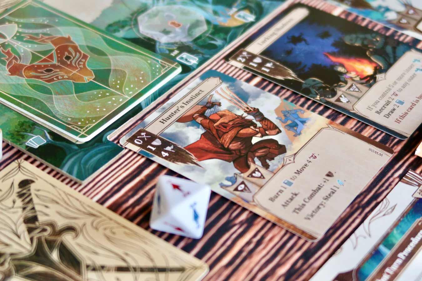 Each round, you and your opponent alternate playing a total of 3 of your faction-specific cards for their action effects. These effects include positioning your warbands, initiating combat, extracting crystals, bestowing temporary passive effects, and many more. When combat occurs, you will use the same cards for their combat values instead, in a simultaneous bid to gain combat bonuses, inflict and fend off casualties, and augment the Dominance value of your warbands to win the combat.