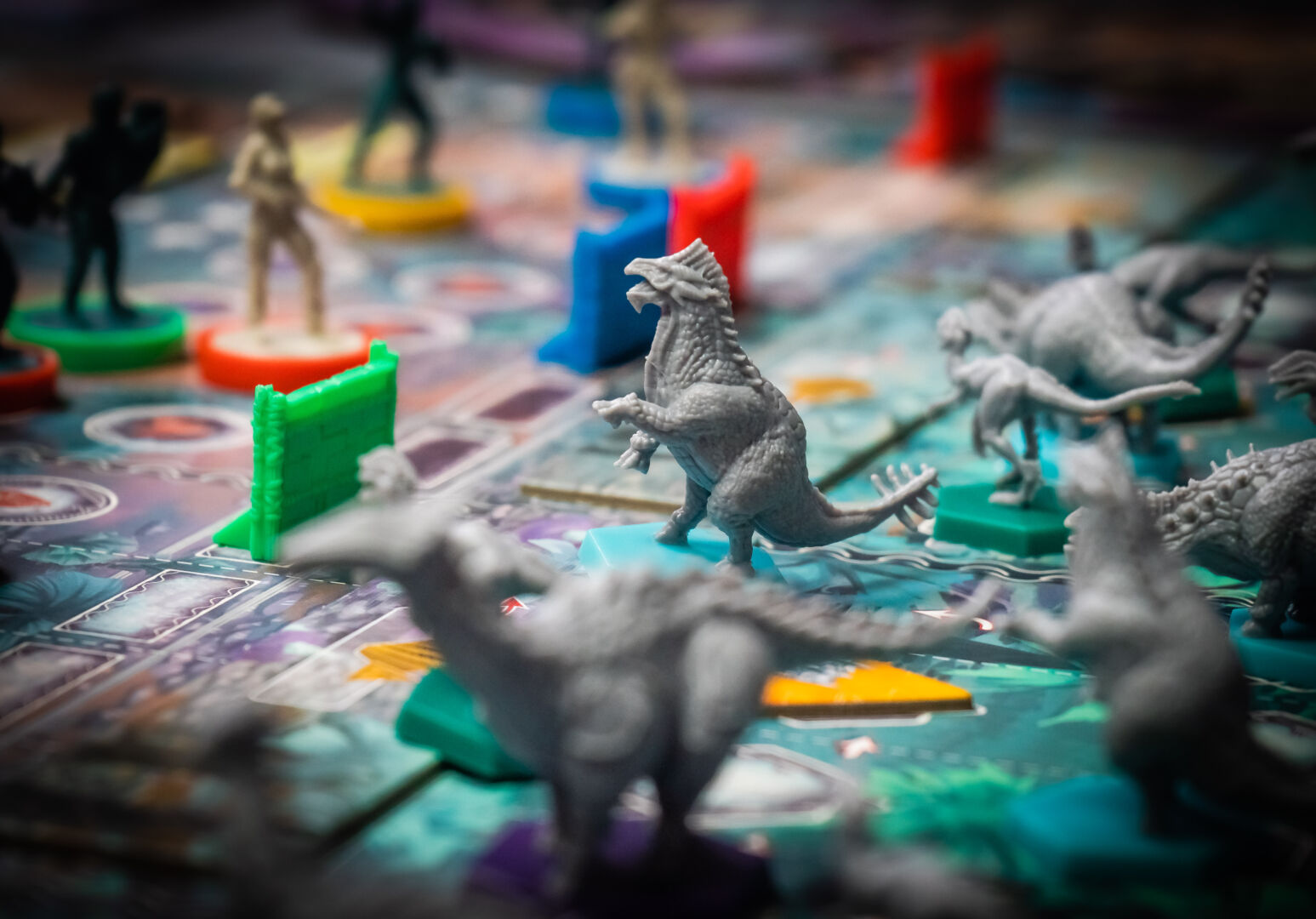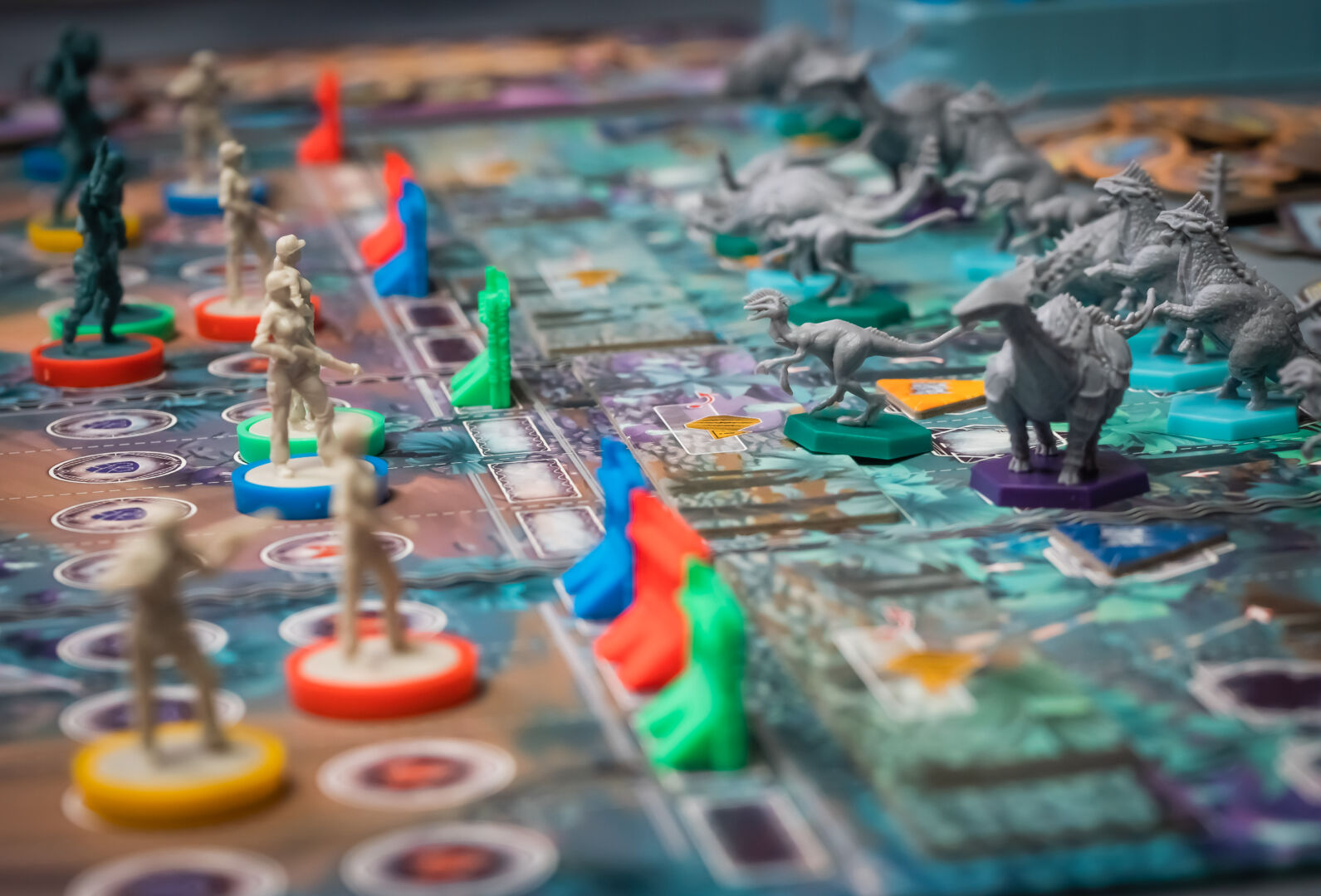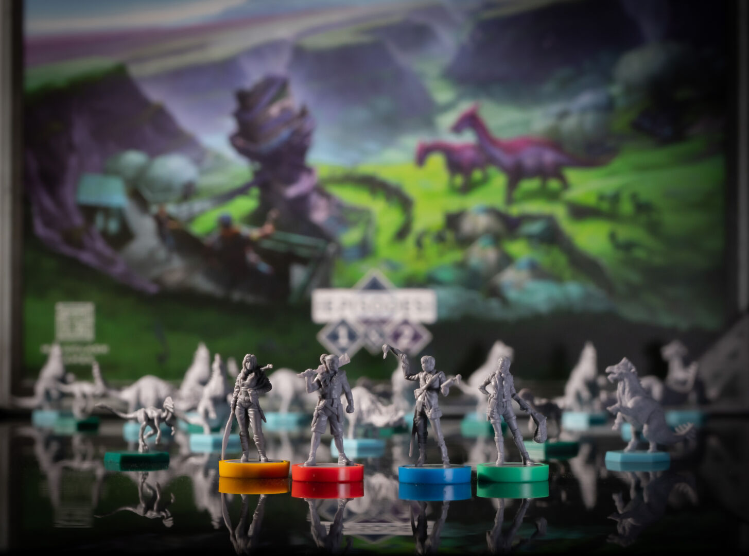 Assemble exploration parties, and venture beyond the walls of the established city! Undertake Adventures, capture Dinosaurs roaming the wild, and establish Outposts on the map hexes for even more die placement options.
