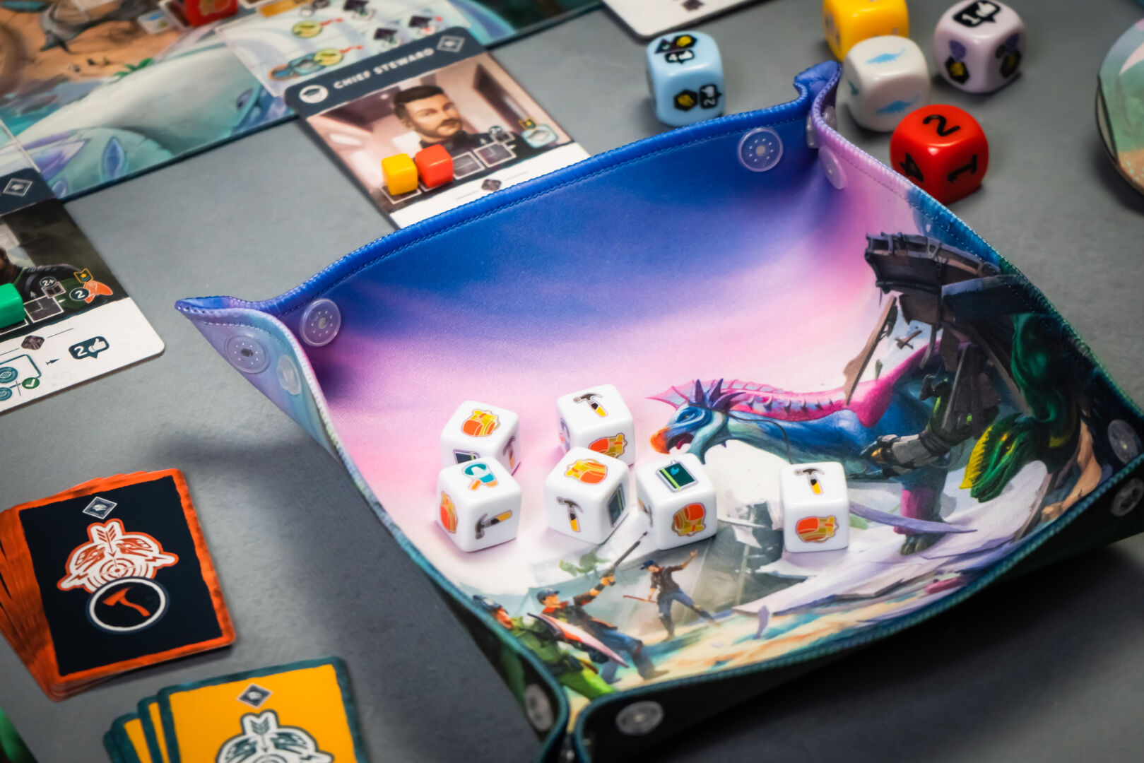 Using the core mechanism of the entire series, you take Actions by drafting and placing Specialist dice from a pool. Some Specialists are better suited for certain Actions than others.