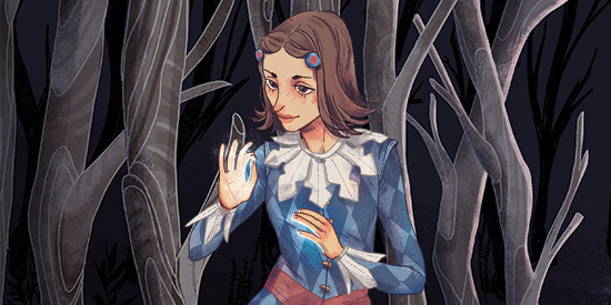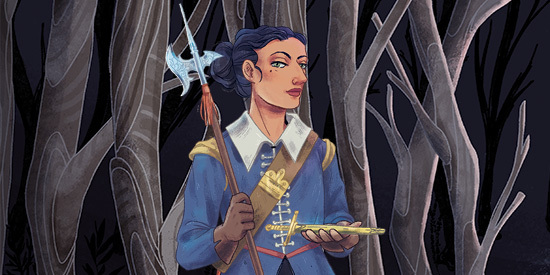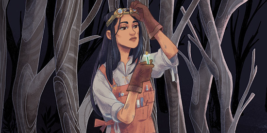 Dogs pull her sleigh and so she travels the countryside, brewing potions and helping the locals wherever she goes, keeping her ears open for any sightings of the Wind Swindler who cursed her family.
