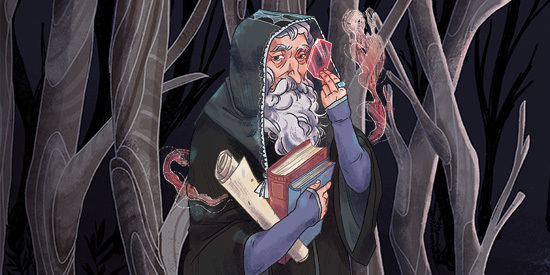 He was much admired by his congregation for his great knowledge, but jealousy led to accusations of witchcraft. He left the church so that he could be free to help and teach people, both with words and magic.
