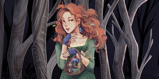 Her parents wanted her to be a lady's daughter, but she was always hiking in the woods, collecting nature's gifts. Soon they realise they can't change her, and Wilmot is happy, because mushroom picking is a good cover for collecting ingredients for potions.