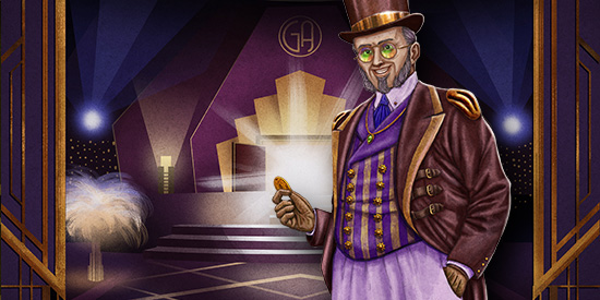 Forty years have passed since. One night, Magoria’s four most talented rival magicians received a mysterious invitation that led them to the Magnus Pantheon. There, they met no other than the living embodiment of the magician’s statue downtown: Dahlgaard himself. He revealed to them his greatest secret, kept hidden for decades: his childhood discovery of a glowing amber crystal on a stone pedestal in an underground cave, which he named Trickerion. The stone slowly changed him and granted him almost supernatural luck, speed and dexterity, leading him to become the greatest magician of his time. Dahlgaard then revealed that the small, radiant fragment enclosed in their invitation was indeed a piece of the Trickerion stone, which he had shattered to invite the magicians for a final competition. The winner would take on Dahlgaard’s legacy to restore Magoria’s former glory, receiving his entire fortune and the remaining pieces of the Trickerion stone.