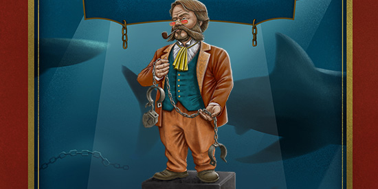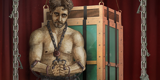 With incredible effort and on the verge of drowning, he broke free of his fetter and reached the water's surface. To his great fortune, a burned-out street magician, who planned to drown himself in the river that day, witnessed the scene from the riverside and helped the poor boy climb out of the freezing water. Saving the youngster gave him a new meaning in life, and he offered him a job as his apprentice. Frederic quickly learned the profession of illusionists; he mastered the techniques of escaping any restraint, be it chains, padlocks, straitjackets or a coffin. Soon, he became the Master of Chains, the incredible escape artist, the world knows him as today.