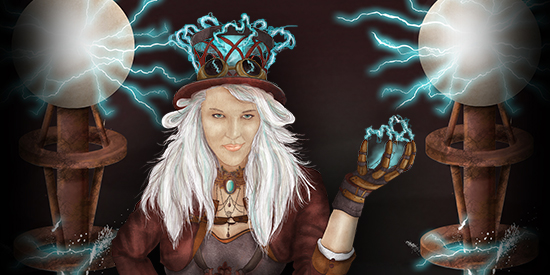 She dedicated her life to the research of the emerging, unexplored concept of electricity, as she was convinced that with it, she can bend the power of lightning to her will. The people of Magoria both feared and admired her obsession, and as she learned to both control and tame the power at her disposal, she realized that she can turn the admiration into fame. Electricity was nothing short of magic at the time, and in Magoria, good magicians have an easy way to success. While many illusionists in the city were more dexterously skilled, Electra’s lightning-enhanced performances were unmatched spectacles that left the audience breathless.