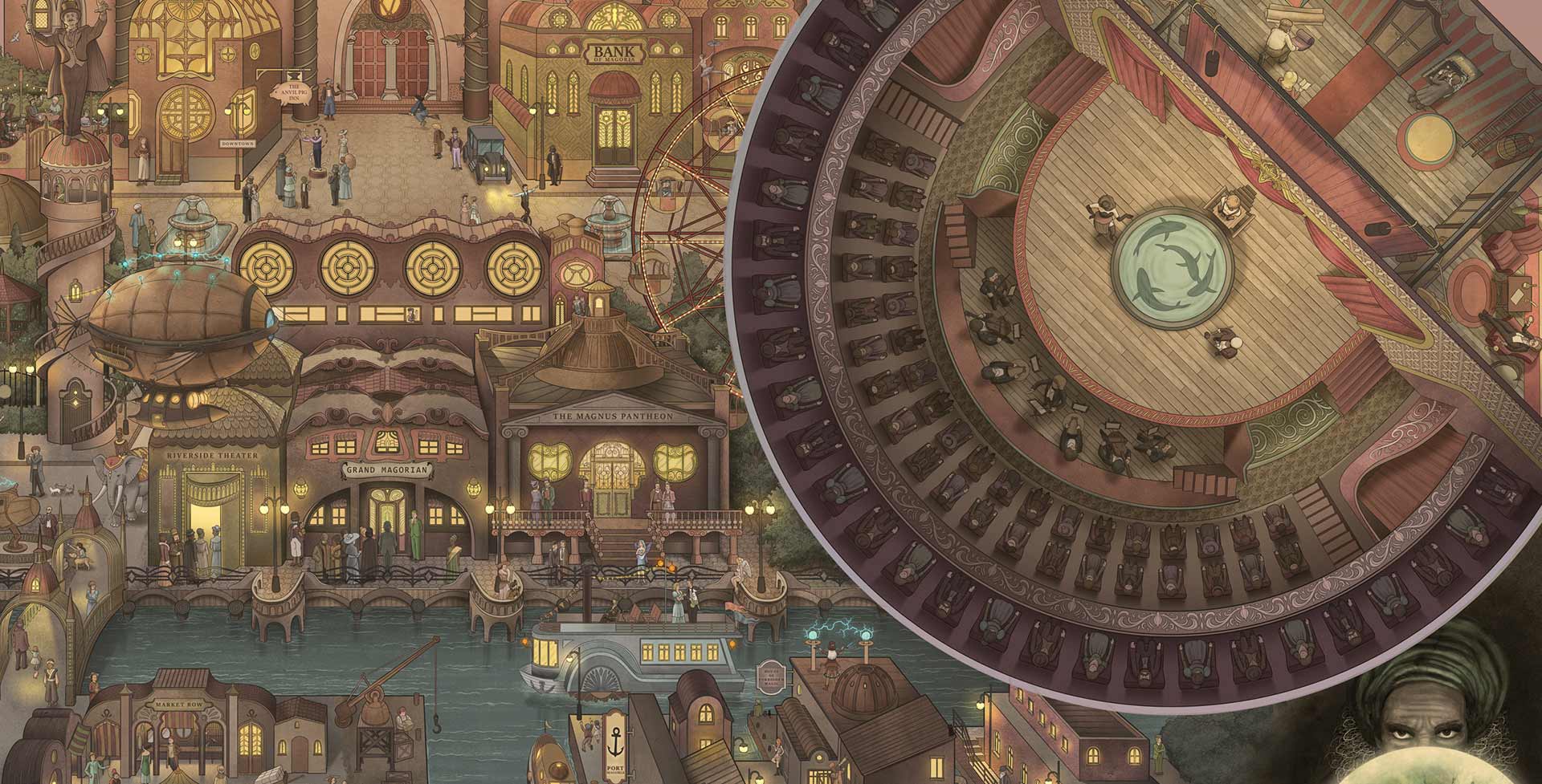 The tale of Dahlgaard the Magnificent is entwined with Magoria, a sleepy town at the dawn of the Industrial Revolution. Even as Dahlgaard first showed up on its cobblestone streets as a penniless youngster performing closeup magic, there was something about his incredible tricks that left his audience breathless. In just a few years, his almost unnatural talent far exceeded that of the greatest illusionists of his time, and he would become known as Dahlgaard the Magnificent – a living legend.