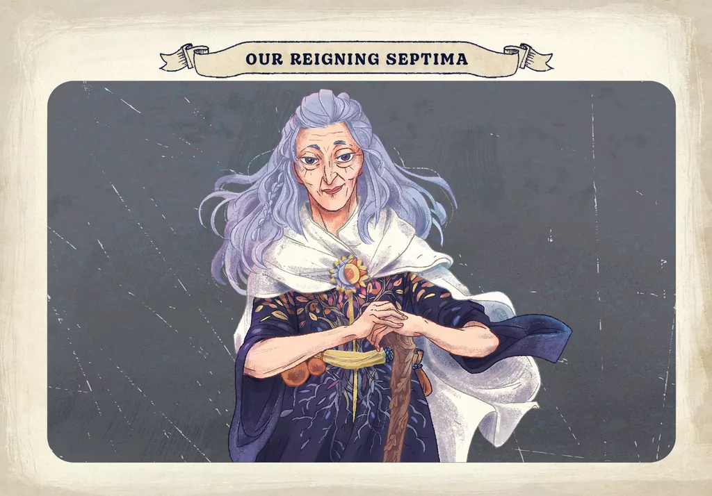 At this point, a question I heard many times as I pitched the game was: how do you manage the different player counts if the player interaction is so important? The answer comes from Septima herself! Since her people are competing to be her successor, she is obviously also present in the town to witness the events. She uses the same actions as the players, allowing them to match with her as well. Depending on player count she takes 1 or 2 actions per round, and these actions are known in advance, so players can plan around it. However, few things are more suspicious than working with the town’s mysterious old lady, so the guaranteed collective bonus is kept in check with double Suspicion raised. It is important to clarify that the Septima is not a bot as in several solo games: her actions are not actually resolved and she has zero upkeep, but she does give a nice tableau of options even in two-player games.