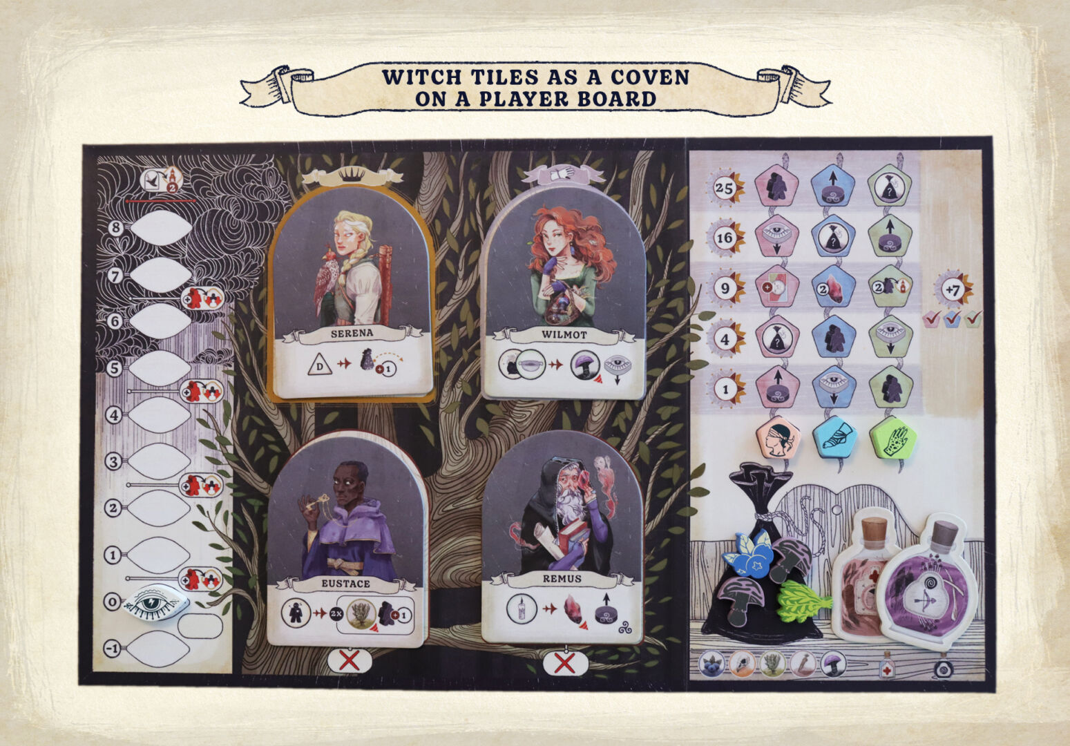 In the first iterations of Septima, I was thinking about individuals, independent witches competing for the role of the Septima. But as I developed the game, it started feeling a bit odd. Why are those people alone? Where are the others, the famous covens of the world? So from individuals I started to move towards the idea of groups in the game, and based on the reactions, this was one of the big “wow” moments of the design. We start the game with only two witches but we do not travel to Noctemburg for fame and wisdom alone, but also to expand our family, save innocent witches, and add new unique abilities to our group. In every game you manage different abilities and personalities, and it feels fresh and familiar at the same time. And you all know the feeling very well when you just come short of winning, but you feel you created something which is yours. In Septima this is your coven – your family!