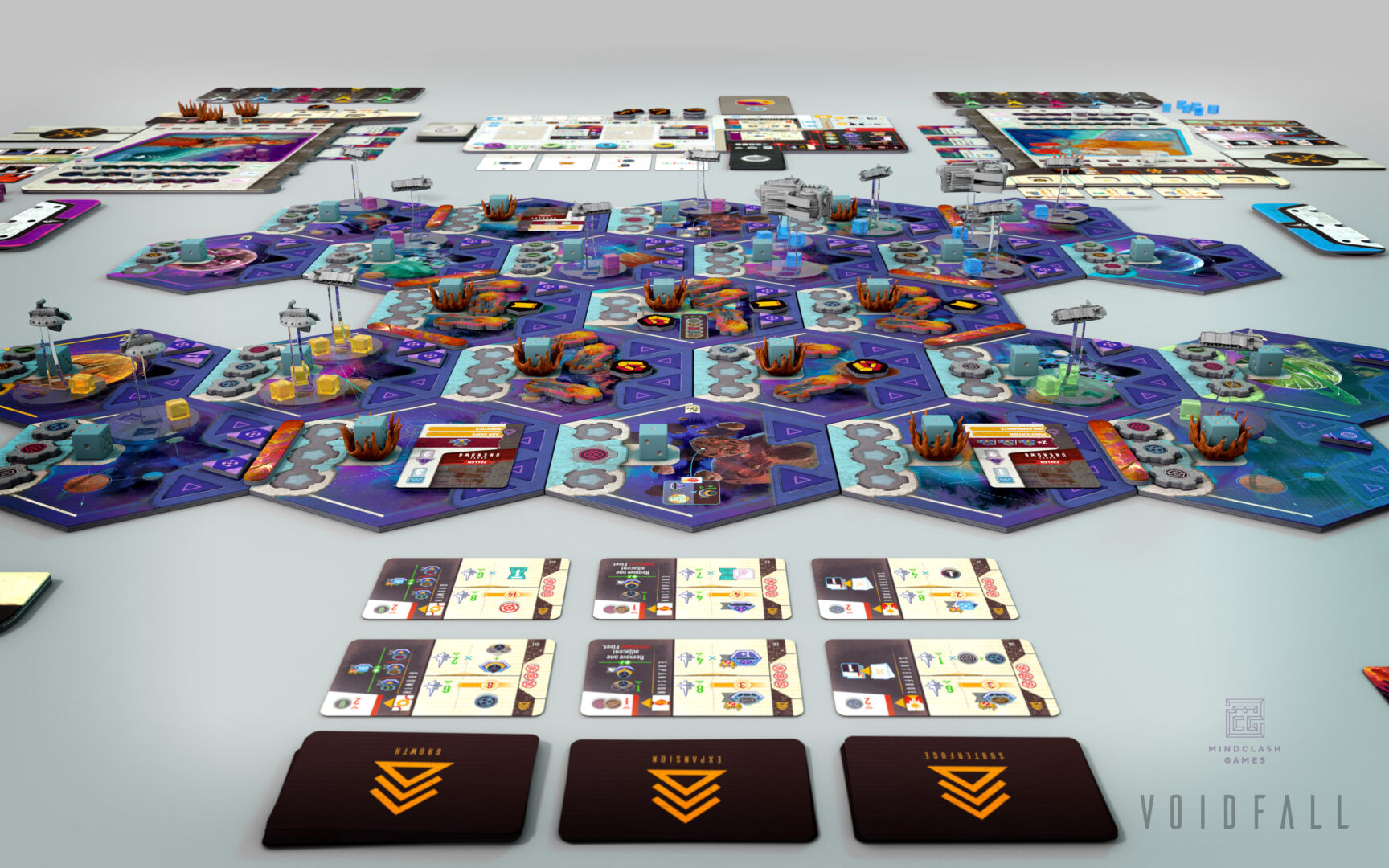 Please note that while Voidfall has already undergone extensive playtesting and development, it is still a work in progress, so anything you see and read here may be subject to change. We are looking forward to many exciting discussions with you under each entry on boardgamegeek.com!