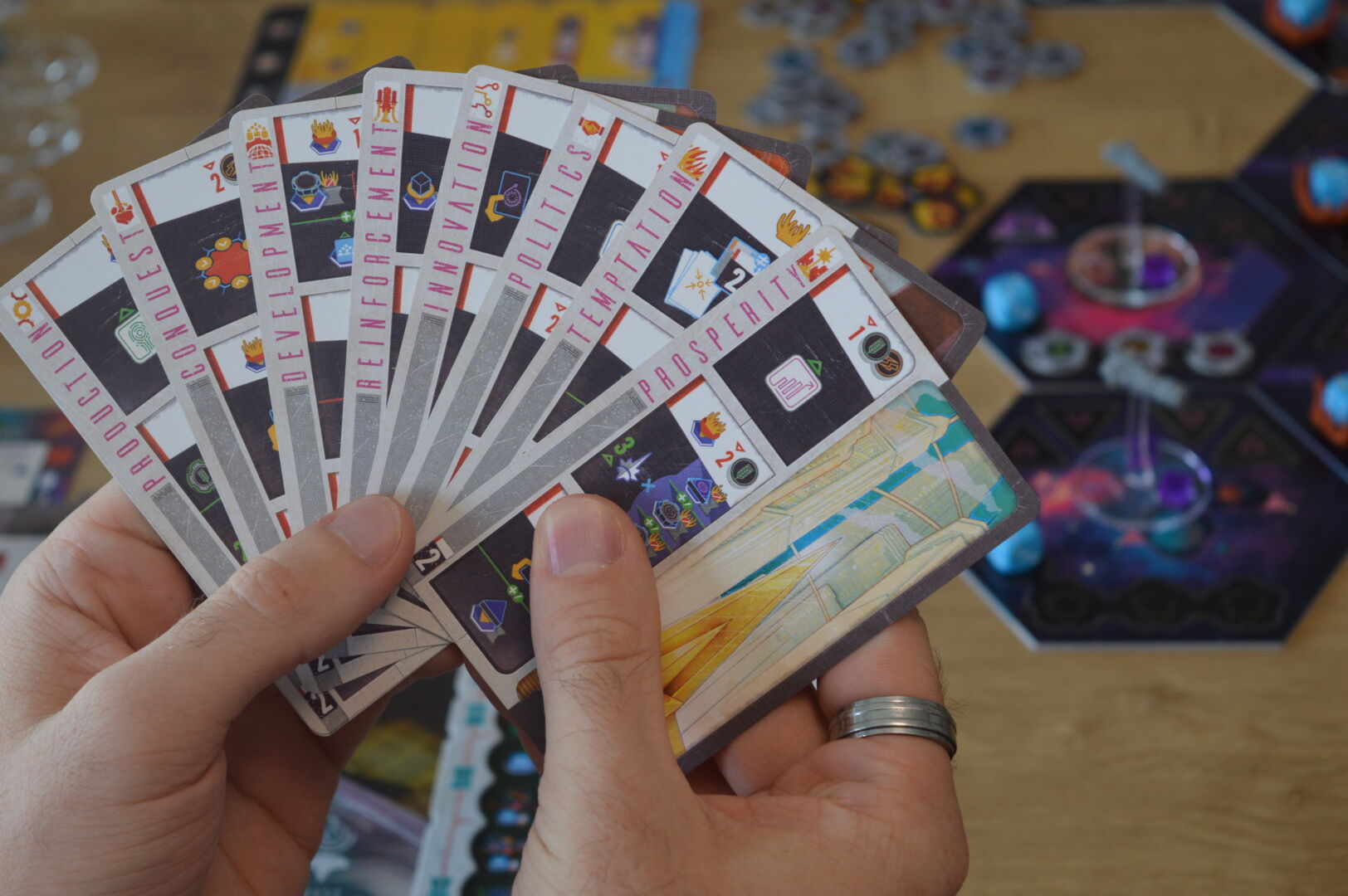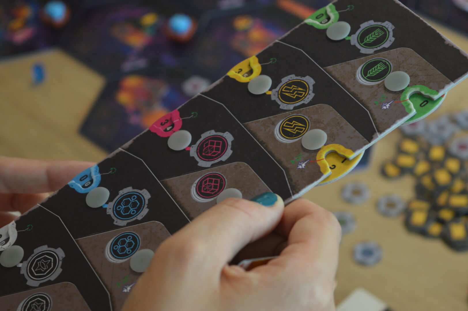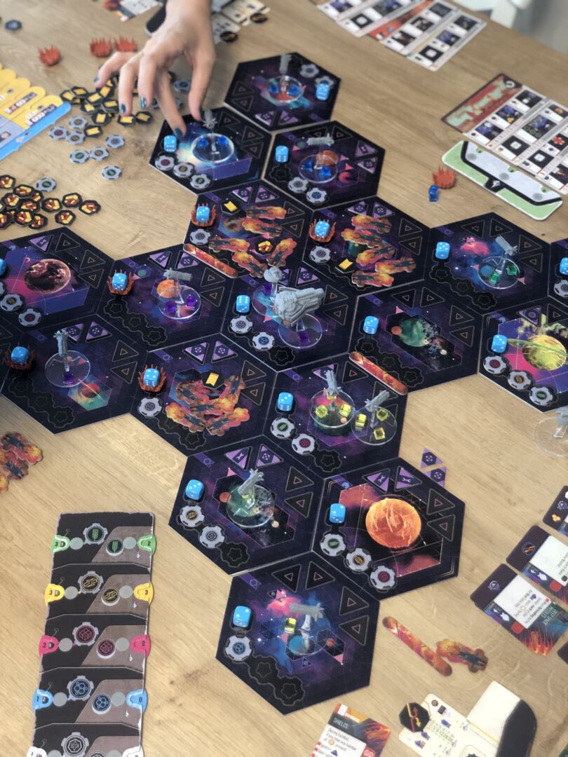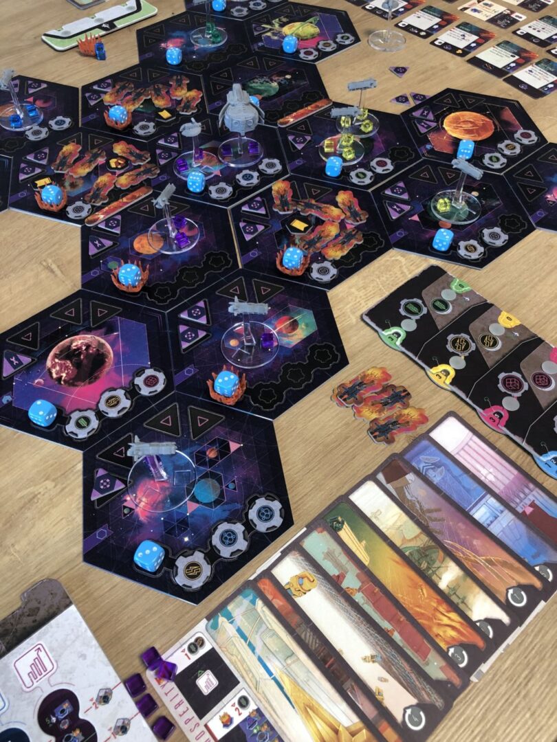 Before we jump in, we wanted to say a huge thanks again for your enthusiasm, comments and questions under these weekly design spotlights – they have helped us to prepare for the Kickstarter and finetune the game a lot during these last few weeks! One of the most important features you commented on after the first entry was the color scheme and UI on the hexes, which we’ve been discussing with Ian O’Toole since the launch of these weekly posts. It’s quite difficult to judge the usability and color of such an integral part of the game without having seen it in real life, so we actually decided to wait for the prototypes to get here with the purple color scheme and UI so we could test it. It was a very valuable and satisfying experience because it proved two things – after countless digital playtests, the game works wonderfully with real-life components (*phew*), and the table presence is amazing. Nonetheless, your comments about the hexes stuck, so we decided that it was worth dedicating a bit more time to them in order to make the map feel more galaxy-like and strengthen the 4X feel. So, Ian O’Toole created these new hex designs for Voidfall, which we believe are more on brand with the game! They were also tried and tested in reality and they work just as well, if not better than the previous version.