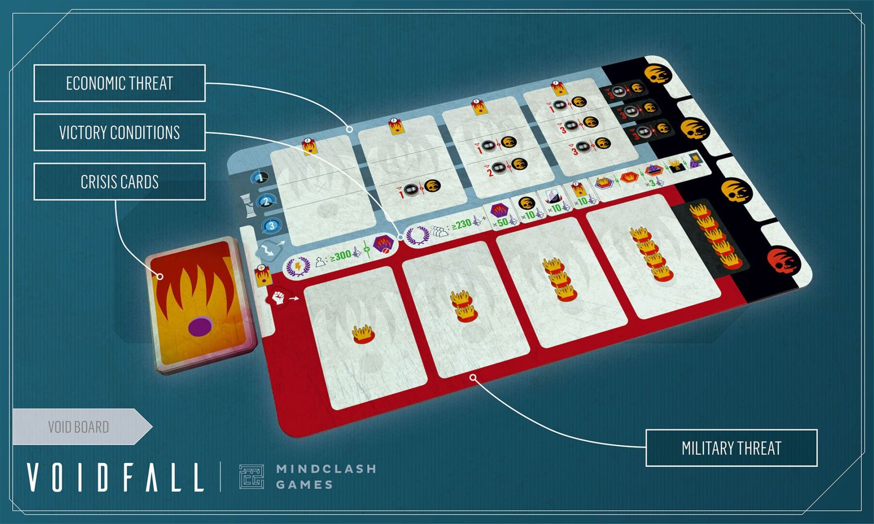 While the competitive game of Voidfall is about “dividing up the galaxy after the storm”, the cooperative game takes you back in time, right into the eye of the storm itself!